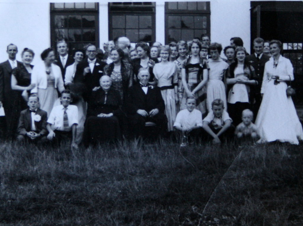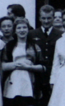 Øverste billede ses det store selskab, det midterste billede er et udsnit af det øverste billede og her ses Nicoline og Niels og på det nederste billede der også er ey udsnit af det øverste billede ses min mor og far (min far har sin jagerpilot uniform på).