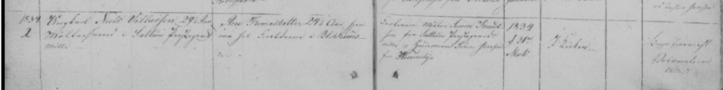 Min farmors morfars far Niels Villadsen er også fra Blokhus og er født 1804 og min farmors morfars mor Ane Thomasdatter er født 1809. De blev gift 31.marts 1834.