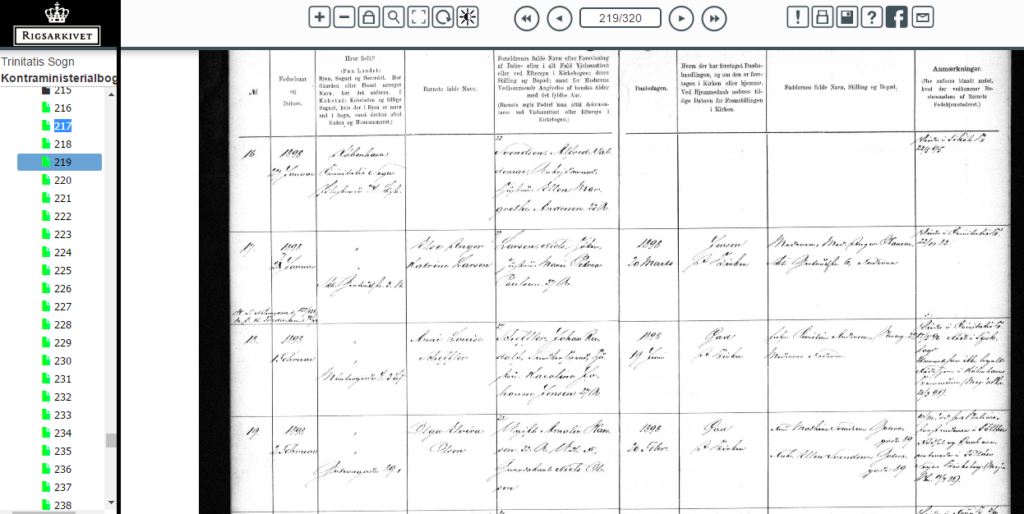 Vores mormor Olga Elvira Olsen blev født 02-02-1898. Hendes mor boede, så vidt jeg kan læse, på Gothersgade 89 i København. Hendes mor hed Amalie Hansen og var 32 år og hendes far var Niels Olsen gårdskarl og ligeledes 32 år. Hun blev døbt i Trinatis Kirke den 20-02-1898 kun 18 dage efter sin fødsel.