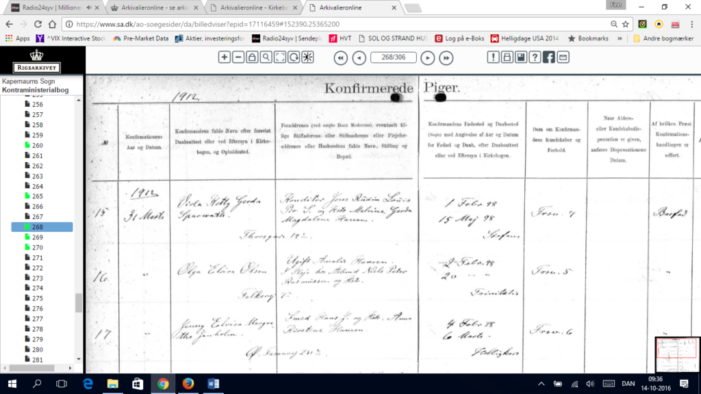Olga Elvira Olsen, født 02-02-1898, fødested København, Datter, Fabriksarbejderske, C Sohous Fabrik