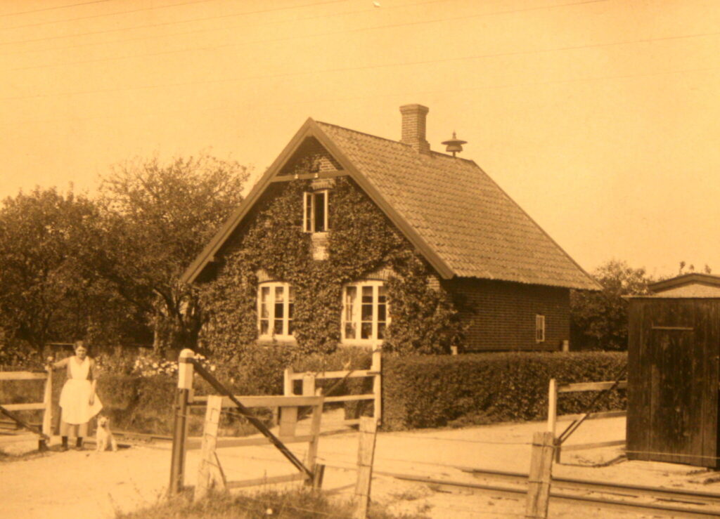 På billedet ses Ossy’s mormor med hunden Ulla. I dag er det letbanen fra Grenaa der går forbi huset, hvor toget engang kørte.