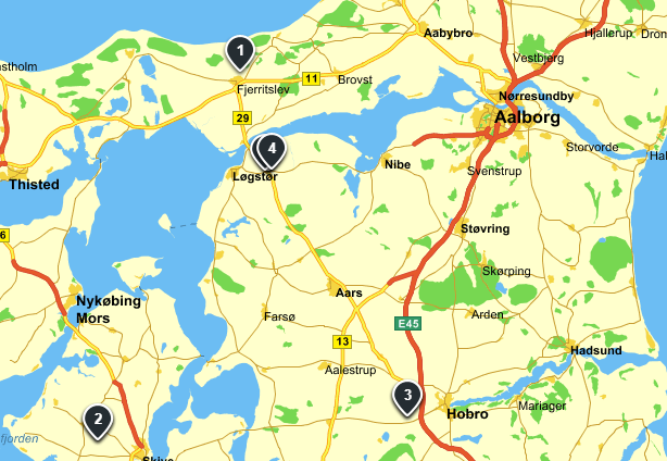 Der er 4 byer i Danmark der hedder Brøndum og de er alle beliggende i Nordjylland (se nedenstående 2 billeder fra Krak.dk).