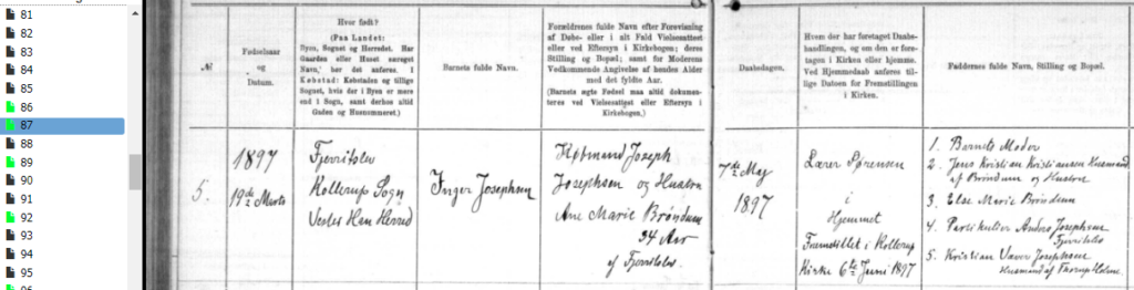 Kirkebogen ved min Severin Josephsens fødsel og dåb – min farfar: